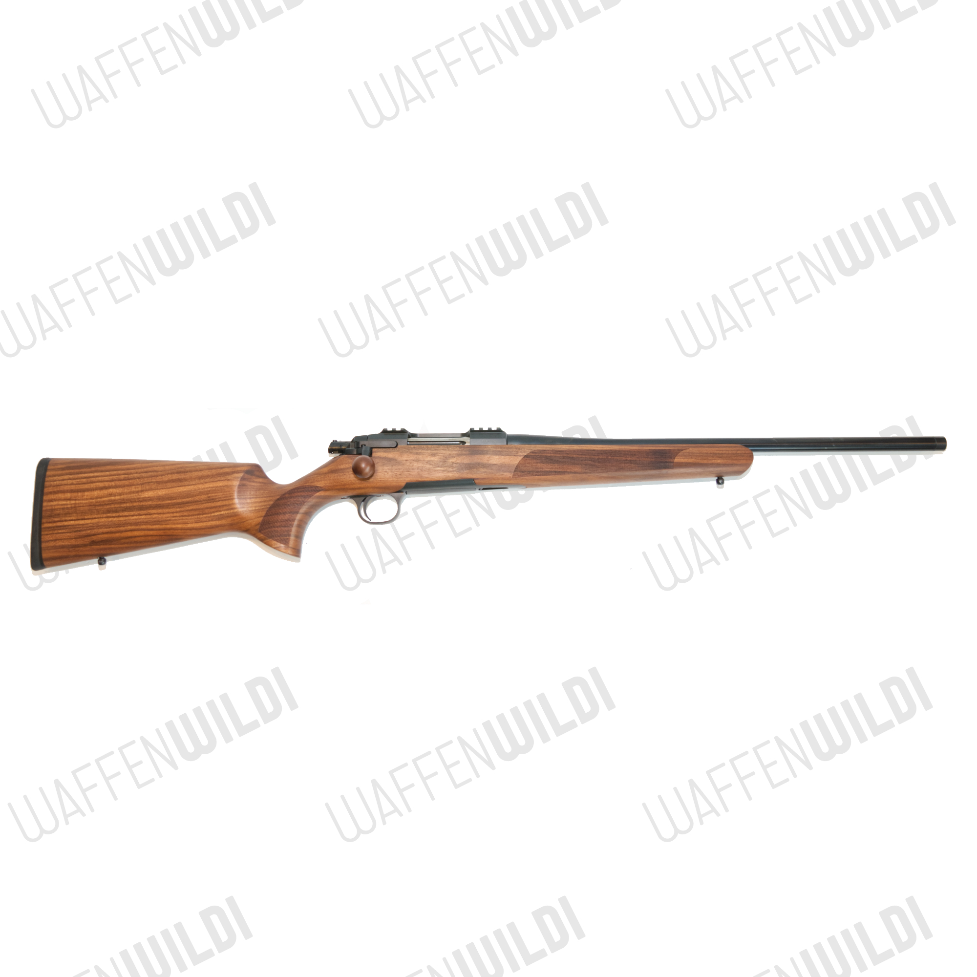 Geradezug-Repetierbüchse mit Handspannung. Der Markennahmen ist Programm, hochfester Stahl und perfekte Passungen garantieren höchste Präzision. Der Geradezugverschluss gleitet seidenweich im Verschlussgehäuse und garantiert schnelles Nachladen. Der 19mm starke und 510mm lange kannelierte Lauf, schleisst mit einem M15/1mm Gewinde ab. Der Spannschieber benötigt nur wenig Kraftaufwand um die Waffe schussfertig zu machen. Das aus Metall bestehende Einsteckmagazin fasst 5 Kugelpatronen. Der gut gemaserte Nussbaumschaft verfügt über einen verstellbaren Schaftrücken und schliesst mit einer Gummischaftkappe ab.